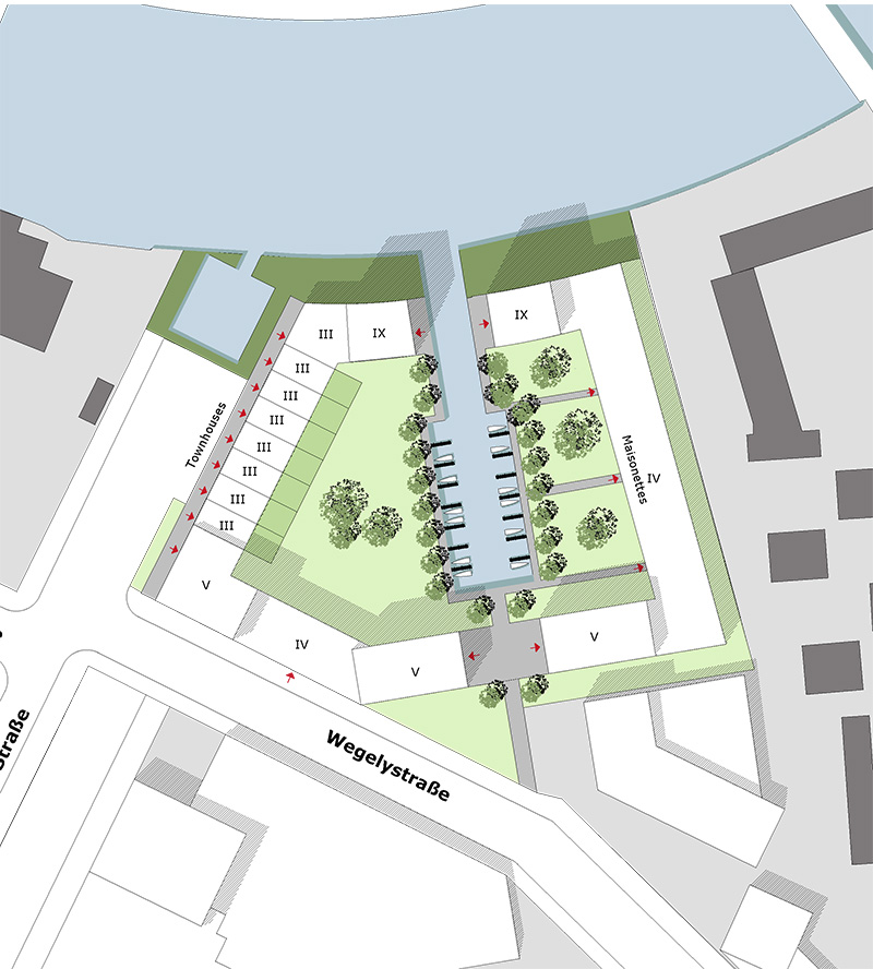 Für den damaligen Besitzer Cannon Kirk wurde auf dem Grundstück eine Wohnanlage mit einer zentralen Marina entwickelt. Das Projekt sollte eine Durchmischung von Reihenhäusern und Geschosswohnungsbau verschiedener Preislagen organisieren.